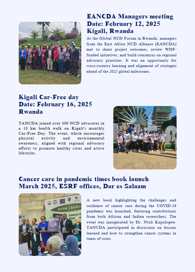 The Tanzania Non-Communicable Diseases Alliance (TANCDA) has reached a significant milestone, marking ten years of dedicated efforts in the fight against Non-Communicable Diseases (NCDs). Over the past decade, TANCDA has played a pivotal role in policy advocacy, stakeholder engagement, and the empowerment of people living with NCDs